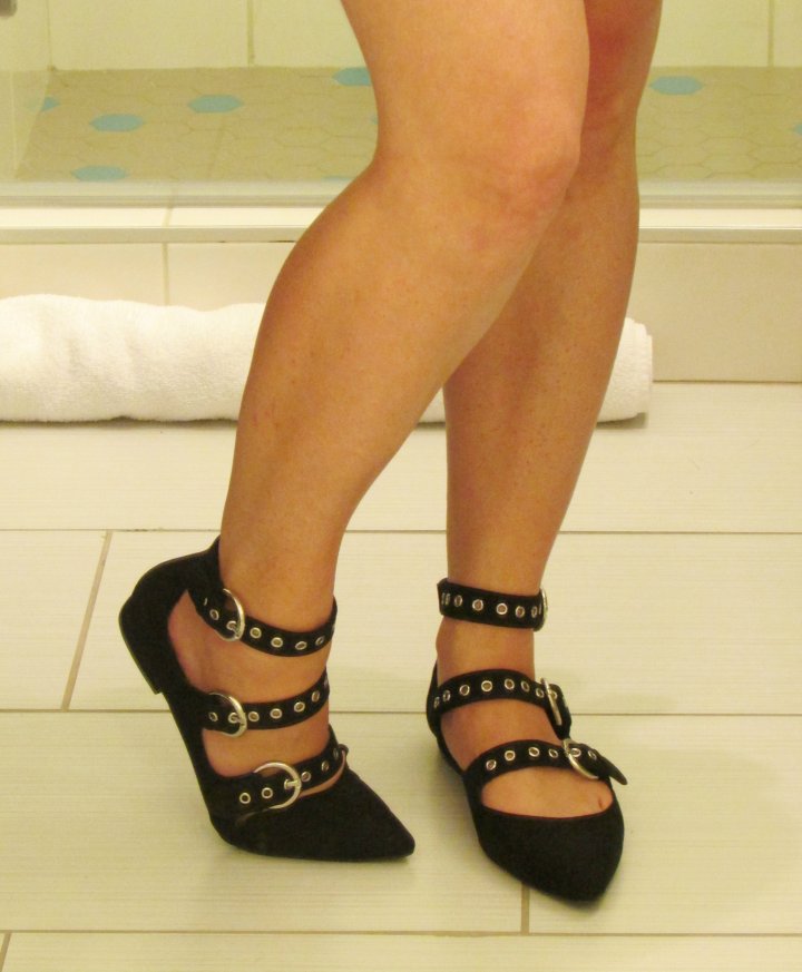 And finally, I wore sneakers to and from San Diego- which simply would not do with a dress this cute- so I grabbed an inexpensive pair of pointed, buckle-strap flats to tie everything together since I knew there was no way I’d be able to walk properly in high heels at a music venue or at a bar. These worked out perfectly- since they were both comfortable and practical- and I’ve been sporting these since I got back with jeans and t-shirts. I feel like they give me a sort of rocker edge without being too dramatic. They’re just the right amount of eye-catching!