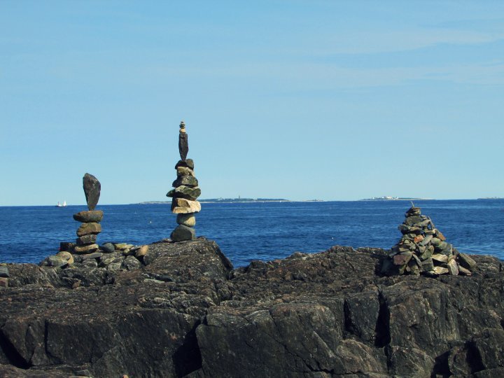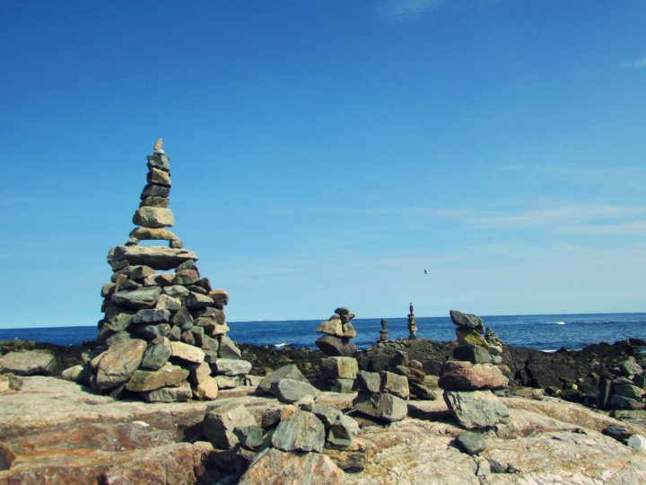 Once I’d reached the top of the rocks along the shoreline, I noticed a path that cut down to a section of the beach where there were a ton of intricate man-made stone stacks (some people call it rock balancing, too- I think.) I mean there were SO many. I’d never seen anything like it before- so I completely forgot about answering my messages and instead grabbed my camera before heading down the pathway to check it out.