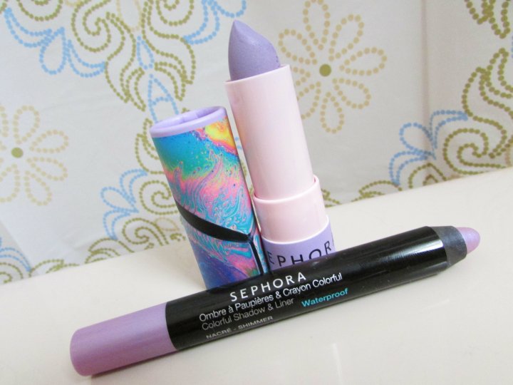 Instead, I stick to one, typically subtle Lilac-hued makeup product- and match it to an accessory- like a clutch or a bracelet- or article of clothing (as in a floral-printed blouse or a cute kitten heel.)