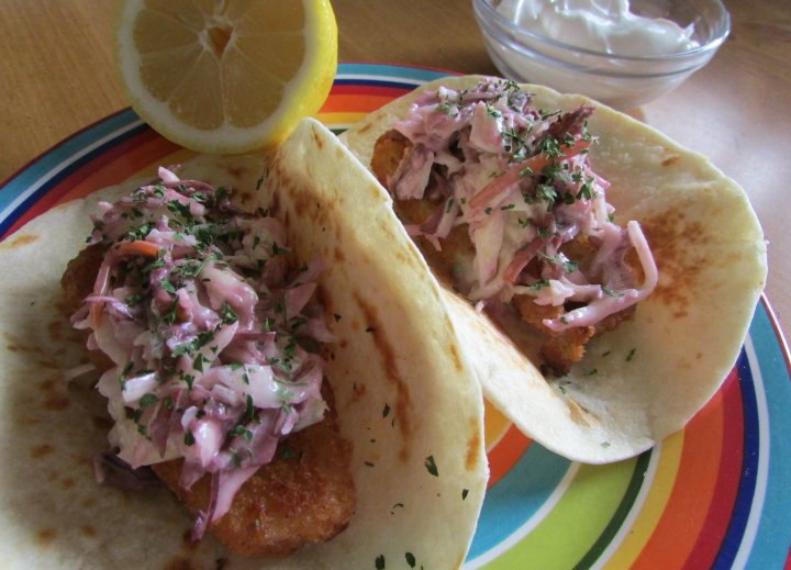I’m a big fan of tacos- any kind, really- and experimenting with different flavor combinations is something I really enjoy when I’m making my own at home for myself or guests. I also love seafood- so street-style fish tacos are pretty much a win/win. Add some red cabbage cole slaw and a twist of lemon and/or lime? You’ve got a delicious lunch to serve at your next cookout!