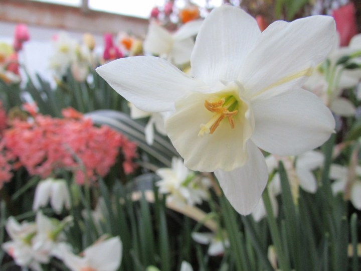 This past weekend I hit the jackpot with a stop at the Botanic Garden at Smith College in Northampton. Their annual Spring Bulb Show is currently underway (through March 17th)– and it was absolutely beautiful. The garden consists of a series of greenhouses filled- wall to wall- with various tulips, lilies, irises, etc. The show is free to get into- although donations to keep the garden up and running and welcomed and encouraged.
