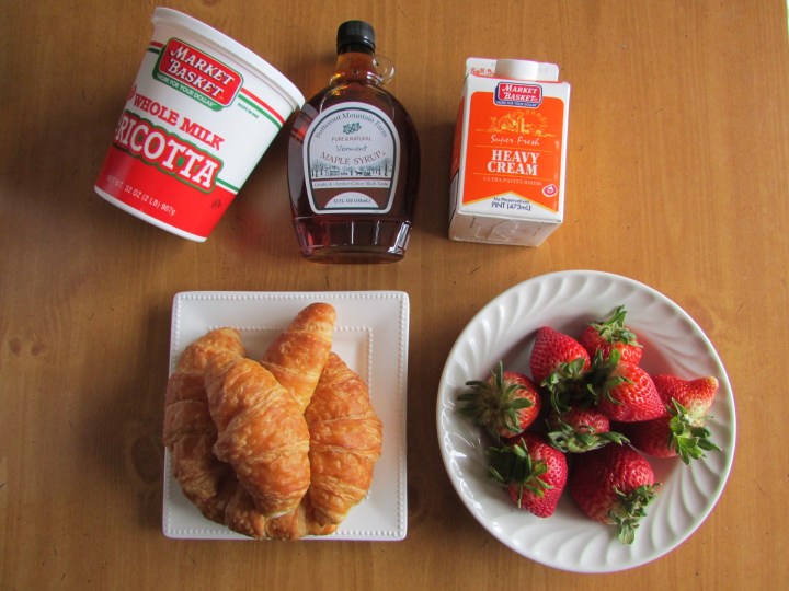 4. Carefully slice open the croissants length-wise, and using a small spoon- fill each croissant with portions of the cream/ricotta mixture.