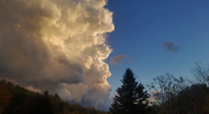 I went hiking that weekend at Mount Grace- and captured this photo of myself crossing a rather rickety wooden bridge over a rising stream of melted snow and rainwater with the remnants of the Fall leaves passing through. Out of all the pictures of snow-covered trees, mossy rocks and storm clouds I had managed to collect- this one was my favorite- because it reminds me of my favorite king of weather here in New England.