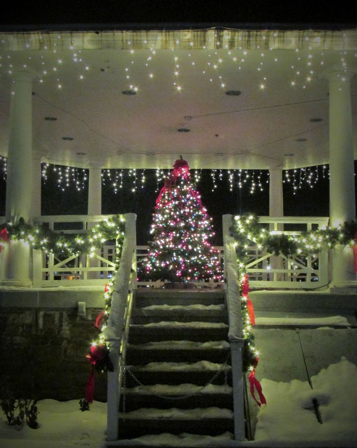 And of course, I couldn’t resist posing for some photos in front of the beautiful display that was set up in the front corridor of the Prudential Center while I had this on. That wreath hanging from the ceiling was gorgeous!